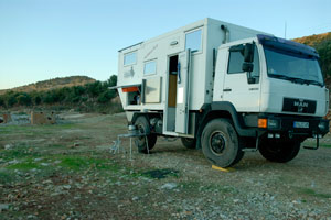 So verlassen wir auch am späten Vormittag diesen schönen Ort. Wir fahren zurück über den Strand durch die dahinter liegende kleine Feriensiedlung, in der es in der Hauptsaison ganz schön voll sein soll. Täglich bis zu 8000 Menschen bevölkern dann den Pinienwald und den Strand. Wir durchqueren Divjake in südlicher Richtung auf einer Nebenstrasse in sehr gutem Zustand, die später dann wieder auf die Küstenstrasse mündet. Dieser folgen wir bis Fier. Dort suchen wir die Abzweigung nach Apollonia. Es stellt sich heraus, das der Wegweiser am falschen Kreisverkehr steht, nach längerem Suchen finden wir dann aber doch noch die richtige Strasse aus der Stadt. Eine Ausgrabung wie Apollonia in einem andern Land z. B. Griechenland bedeutet einen ziemlichen Touristenrummel, hier haben wir die Ausgrabung praktisch für uns alleine.